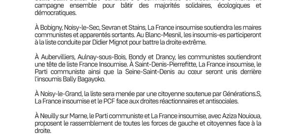 La fédération de Seine Saint Denis fait état dans une déclaration publique d’un accord départemental entre la FI et et le PCF dans le 93. Des réactions de colère de camarades de ce département et de toute la France s’expriment.