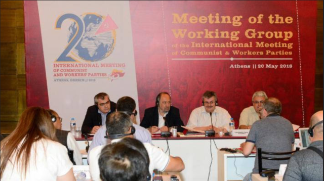 Le Groupe de travail a décidé que la 20e Réunion internationale, qui sera accueillie par le KKE à Athènes, en tenant compte de l’anniversaire de 100 ans de vie et d’activité du Parti, aura lieu les 23, 24 et 25 novembre 2018, intitulée : « La classe ouvrière contemporaine et son alliance. Les tâches de son avant-garde politique -les Partis communistes et ouvriers- dans la lutte contre l’exploitation et les guerres impérialistes, pour les droits des ouvriers et des peuples, pour la paix, pour le socialisme ».