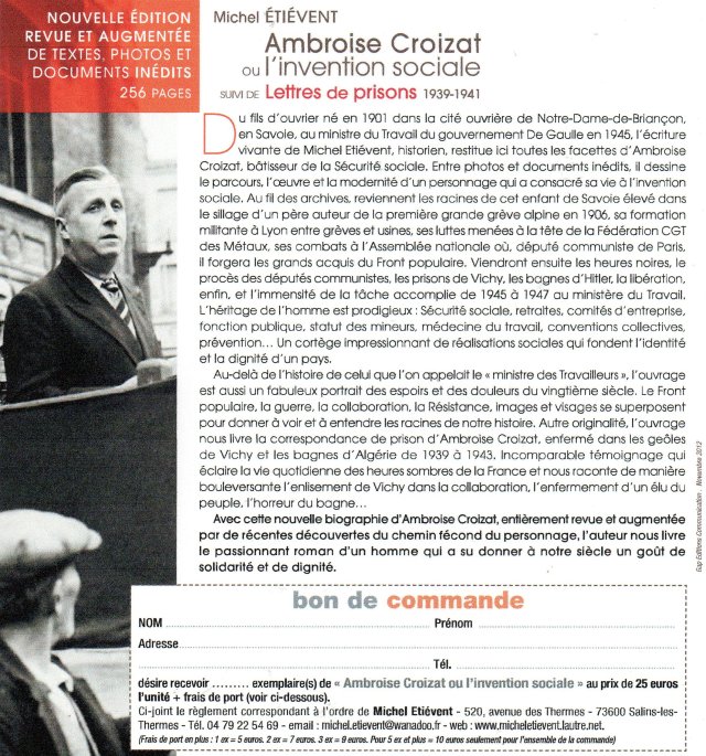 Mes amis, en souscription dès aujourd’hui... la nouvelle édition du livre « Ambroise Croizat ou l’invention sociale ».