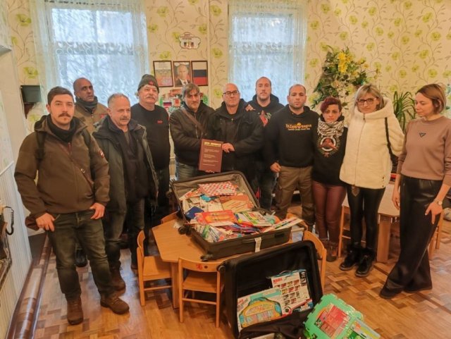 Depuis, chaque année, plusieurs militants communistes et antiimpérialistes italiens, espagnols, basques, portugais, allemands, mexicains y compris une palestinienne, se déplacent au Donbass pour apporter solidarité morale et matérielle aux populations des territoires insurgés du Donbass, aujourd’hui rattachés à la Fédération de Russie par la volonté de ses habitants. Pour la première fois, un représentant de France intégrait la délégation. Pendant que nos gouvernements envoient armes, chars, obus, munitions et conseillers, nous nous apportons du matériel scolaire et de l’argent.