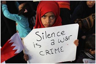 La répression féroce qui s’est abattue contre les opposants pacifiques à la dictature monarchique de la famille Al Khalifa, surtout depuis l’invasion des troupes Saoudiennes aidées par des forces armées du Qatar, du Koweït et des Émirats Arabes Unis, relève d’un génocide lent d’une population autochtone majoritairement Shi’ite et qui se commet dans le silence assourdissant de la « communauté internationale », des « humanitaires » -mis à part MSF qui s’époumone pour alerter sur cette répression féroce notamment en milieu hospitalier-, de l’ONU de Ban Ki Moon bien trop occupée à utiliser ses « forces de maintien de la paix » pour déloger par la violence et en violation flagrante du droit international et de sa propre Charte, le président de la Côte D’Ivoire pour le remplacer par le chouchou des puissances occidentales en application de la nouvelle « Loi de la Jungle » instaurée par la R2P.