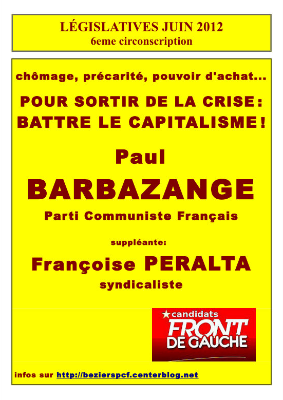 Mais pour l’heure, l’adversaire c’est bien la droite sarkozyste et, localement, son représentant Elie About. Exhibant un tract du candidat de l’UMP qui affirme « avoir un bilan », Paul Barbazange égrène les chiffres du chômage, de la précarité et de l’inégalité dans le Biterrois, et lance un défi à About : « je débattrai quand il voudra, où il voudra, et comme il voudra ». C’est dit !