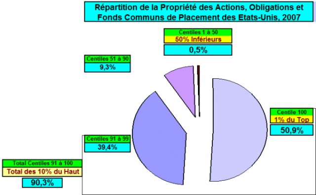 3. Les 1 % des Américains du Haut détiennent la moitié des actions du pays, des obligations et des fonds communs de placement :
