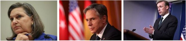 Les acteurs (de gauche à droite) : Victoria Nuland, Anthony Blinken, et Jake Sullivan
