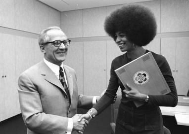 Rencontre avec Angela Davis, pendant la Fête mondiale de la jeunesse et des étudiants à Berlin/RDA, début août 1973