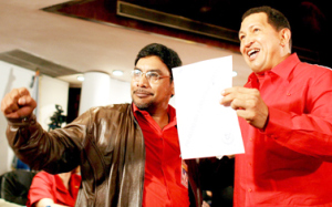 Le président Hugo Chávez Frías et le secrétaire général du PCV Oscar Figuera
