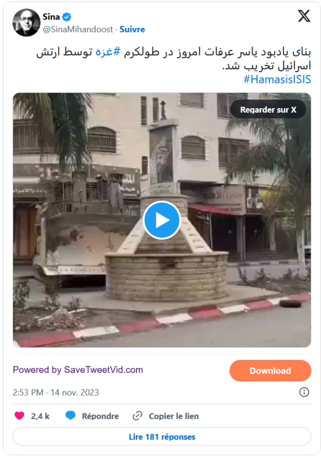 vidéo montrant un bulldozer de l’armée israélienne détruire un monument à l’effigie de Yasser Arafat, à Tulkarem, le 14 novembre.