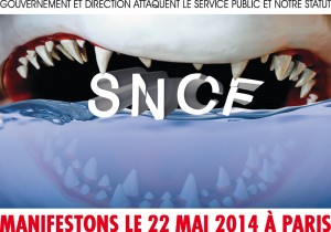 Pour que la Société Nationale des Chemins de fer Français (La SNCF) ne devienne pas la Société Nationale du Cash et de la Finance, les cheminots manifesteront à Paris le 22 mai 2014 pour exiger des réponses aux revendications qui concernent votre quotidien. Cela passe par une autre réforme que celle que veut imposer le gouvernement.