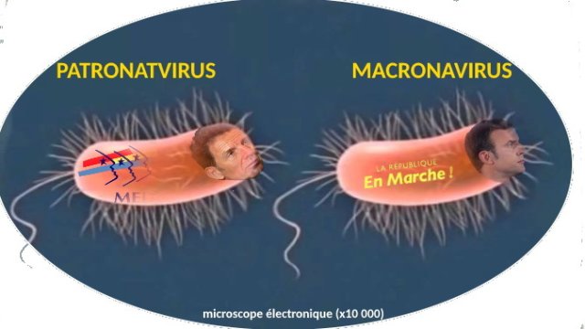 Canaille Le Rouge, lui, est tout le temps dans l’humour et l’ironie. Un petit échantillon de ce qu’il produit, avec la patronavirus et le macronavirus, tous les deux très dangereux et que les luttes doivent absolument isoler :