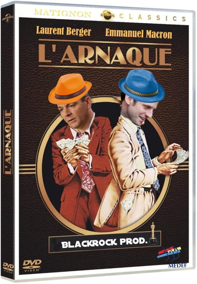 Et le tout nouveau film, « L’arnaque », produit par Blackrock, avec comme rôles principaux, Berger et Macron :