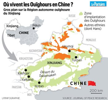 [2Dilnur Reyhan, «  Le Génocide des Ouighurs  », Esprit, 7-8, Juillet Août 2021. Cet article est accessible sur Cairn-Info. Selon cette personne, chercheuse à l’ULB (Belgique), enseignante à l’INALCO et présidente de l’Institut Ouighour d’Europe, le Xinkiang aurait été conquis en 1884 par les Qing, ce qu’elle appelle l’Empire sino-mandchou.