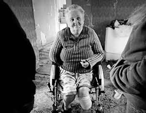 Par une de ces chaudes journées, alors que les gens enlevaient les cadavres des poulets de l’usine, il y a eu une frappe à nouveau. Lioubov Mikhailovna se trouvait près de l’atelier. Elle se souvient à peine de ce qui s’est passé. Une explosion, elle se réveille – le sang gicle. Elle a perdu son bras droit jusqu’au coude et sa jambe gauche jusqu’au genou. Je l’ai rencontrée en décembre de la même année, quelques mois plus tard. Sa famille nous avait demandé un fauteuil roulant. Je n’ai pas pu me remettre de cette rencontre pendant près d’une semaine. J’ai pleuré tout le temps et j’ai écrit ce billet à cause de l’impuissance à changer ce qui se passait, de l’indifférence totale et de l’incrédulité de ceux qui m’entouraient. Mes amis m’ont dit que j’avais mal compris quelque chose. Mais je ne sais pas ce qui n’allait pas. Apparemment, il faut rester là et regarder avec indifférence le visage de Lioubov Mikhailovna [le prénom Lioubov, en fait Lioubov’ avec un signe mou à la fin, est féminin et signifie ‘amour’ ; le diminutif est Liouba, NdT].