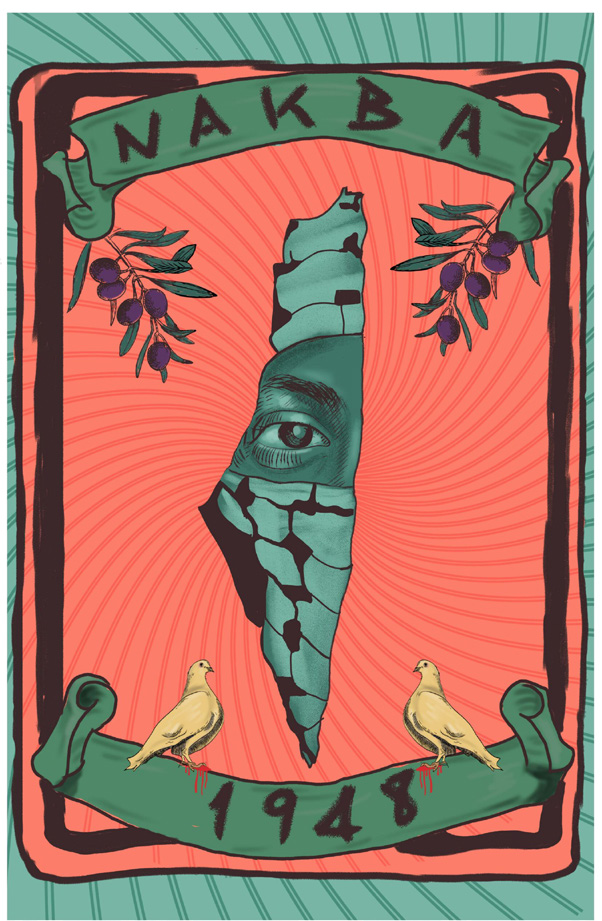 De la rivière à la mer ! réalisé par Ghalmi Othmane pour l’appel artistique de l’AIP en solidarité avec la lutte palestinienne.