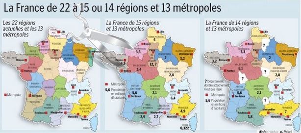 La France jacobine de 1789 va disparaître au profit de régions-Etat à l’américaine avec le projet des régions du PS au pouvoir. Au nom d’une pseudo-économie, la France va se déliter en baronnies de province comme au temps de la monarchie des Valois. La fédéralisation des régions promue par L’union européenne poursuit sa mise en place au détriment des Etats-Nations comme le souhaitent les multinationales qui ne veulent plus d’Etat coercitif pour leur business mondialisé.