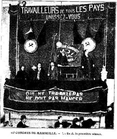L’Internationale Communiste nouvellement créée utilise ce symbole dès 1919, et il devient ainsi celui des communistes et du communisme. Toutes les sections nationales de l’Internationale communiste l’adoptent immédiatement après leur adhésion. En France, la faucille et le marteau ne sont pas présents au congrès de Tours, car l’adhésion à l’internationale communiste ne se fera qu’à la fin du congrès. Le nouveau Parti Communiste SFIC les prend comme « emblème » dès son premier congrès en 1921, au congrès de Marseille (voir photo).