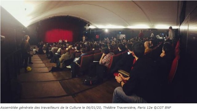 A la Comédie française, ce sont les techniciens qui tiennent le piquet de grève depuis le 5, soulignant également la pénibilité de leur travail. De nombreux autres théâtres ont fermé leurs portes, uniquement le 5 pour beaucoup, comme les théâtres de l’Odéon, de la Colline, Chaillot, également dans le privé comme celui des Champs Élysées et bien entendu hors de Paris comme le Théâtre national populaire de Villeurbanne, le Théâtre de la Cité de Toulouse ou encore la scène nationale de Niort. Ne bénéficiant pas du même régime que ses camarades parisiens, l’opéra de Lyon est également entré en grève, annulant notamment une représentation le 17 décembre sous les applaudissements ou huées d’une salle pleine à qui les comédiens venaient d’annoncer la décision collective. Des compagnies de théâtre se sont également elles-mêmes mises en grève ou ont décidé de reverser le montant de leurs cachets à des caisses de grève. D’autres types d’établissements ont donc rejoint le mouvement social, liant lutte pour la préservation de la retraite par répartition et lutte sectoriel contre le manque de moyens et la dégradation des conditions de travail. Notons ainsi les grèves des personnels des différents sites de la Bibliothèque nationale de France ainsi que de la Bibliothèque publique d’information ayant occasionné 11 jours de fermeture depuis le 5 décembre, contribuant tous à un appel national des personnels de bibliothèque en lutte afin d’accentuer la mobilisation en vue du 9 janvier. Les employés de la Cinémathèque française se sont également mobilisés pour cesser le travail à partir du 8 janvier, premier jour de la rétrospective sur Jean-Luc Godard. Les équipes de Radio France sont également en grève quant à elles depuis le 25 novembre pour refuser une nouvelle suppression d’effectif à hauteur de 300 postes, alors que le nombre d’employés est passé de 12.000 il y a 10 ans à 7.000 aujourd’hui.