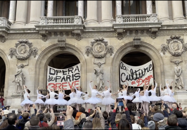 Interpréter le ballet mythique de Tchaïkovski au pied de leur lieu de travail tout aussi emblématique qu’est le Palais Garnier avec une équipe entièrement gréviste est ainsi un beau cadeau de Noël adressé à l’ensemble des travailleurs mobilisés contre la réforme des retraites, alors que la grève dure et persiste pendant les fêtes. Plus que ça : sans avoir à dire un mot, la performance de ces danseuses incarne l’ensemble du combat qui est actuellement mené. Un travail exemplaire qui ne peut exister que grâce à des dispositifs propres à ses conditions de réalisation. Elles nous rappellent cet élément essentiel que nie le gouvernement : les corps s’usent au travail. Les danseuses et les danseurs de l’Opéra de Paris ont choisi cette vie de dévotion à leur pratique, qui contribue à la renommée culturelle de la France. En sortant danser sur la place publique devant l’opéra d’où pendent leurs banderoles, elles montrent au monde ce que permettent les régimes spéciaux de retraite et en quoi ils sont splendides. Elles disent :