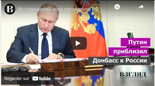 « Offensé » est un euphémisme, d’ailleurs. « La possibilité d’une intégration explosive » du Donbass à la Russie est en train de se créer, s’inquiète l’ex-ministre des Affaires étrangères Pavlo Klimkine. « Le Kremlin accélère le scénario d’une annexion rampante des territoires occupés », s’indigne l’ex-président Petro Porochenko. Ces personnes ont travaillé dur pour qu’un tel décret ne soit pas signé, car elles comprenaient ce qu’il impliquait.