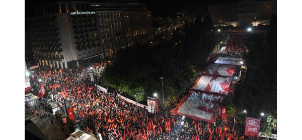 Des centaines de milliers de travailleurs et de jeunes ont envahi les rues et les places à travers notre pays...La colère du peuple est devenue un fleuve impétueux qui lors des élections ne peut être exprimé que par le renforcement du KKE !