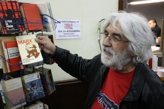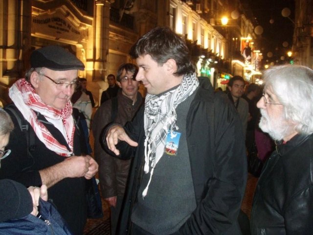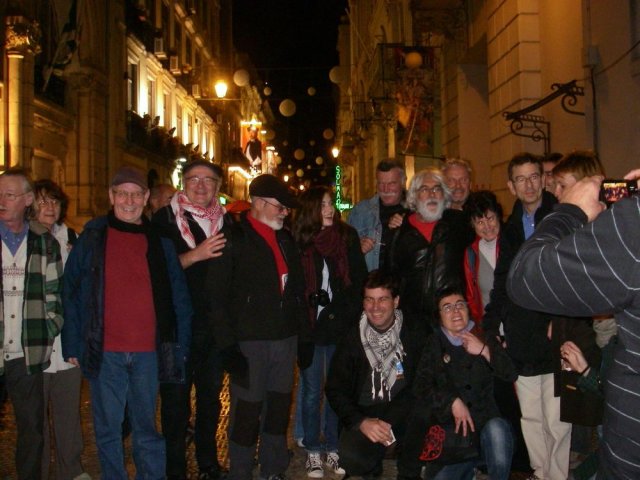 il faut songer à organiser le repas et le retour à l’hôtel... Comment trouver un restaurant pour 33 personnes ? Un camarade portugais nous indique un lieu militant très typique... Finalement, il nous accompagne et sur le chemin, on rencontre un des 13 députés communistes Portugais :