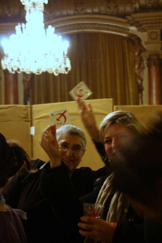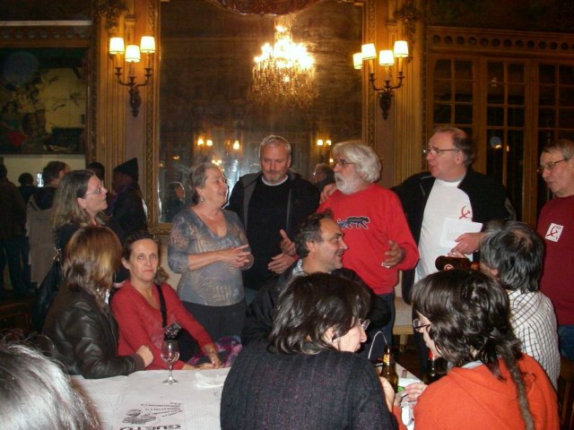 Et bien sûr, la joie internationalise, et le bar aidant, les chansons sont reprises en plusieurs langues... On découvre alors le cri de ralliement rythmé des communistes portugais sur quatre temps : P C P ! P C P ! P C P !...