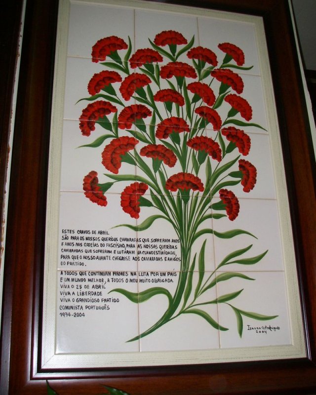 On invite bien sûr le camarade portugais qui nous conduit jusqu’au centre d’Alentejo... un palais d’origine maure, mosaïques, salles immenses, plafonds et murs peints, luminaires de château... qui a été « pris » à la révolution par les organisations militantes de la région de Alentejo, fief du PCP dans une région agricole. Des producteurs de la région qui ont bénéficié de la réforme agraire approvisionnent ce lieu de rencontre militante géré par un communiste.