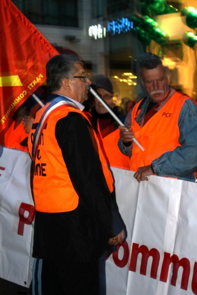Les chansons reprennent. Après l’internationale et la jeune garde on nous demande Les Canuts et... Ma France ! Les badges PCF avec faucille et marteau ont du succès...