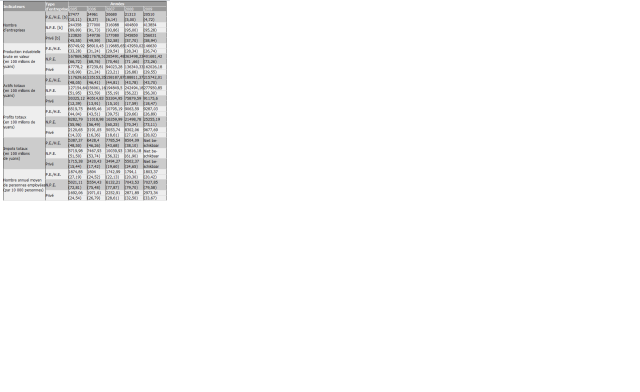 [14] P.E. et H.E. désignent les entreprises industrielles, respectivement propriétés de l’État et en holding d’État. N.P.E. désigne les entreprises qui ne sont pas propriétés de l’État et qui comprennent à la fois les entreprises privées et les autres entreprises N.P.E. Les données pour les entreprises industrielles N.P.E. sont calculées en soustrayant les données des entreprises P.E./H.E. des données de toutes les entreprises industrielles au-dessus de la taille mentionnée.