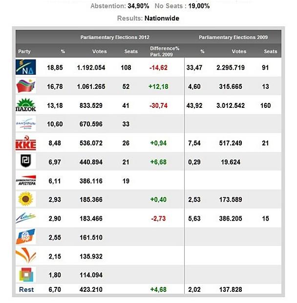 Les pertes du PASOK ont donc été très largement redistribués vers des partis qui soit soutiennent ouvertement le PASOK, comme Gauche démocratique, soit soutiennent une ligne dont l’opposition formelle à la ligne actuelle du PASOK n’en est pas moins concordante avec les positions social-démocrates traditionnelles.
