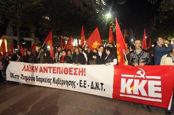 « Les élections auront lieu dans une atmosphère d’intimidation sans précédent avec à son épicentre les "paquets de soutien" de l’UE avec la menace d’une faillite incontrôlée, dans une atmosphère d’anti-communisme intense et de provocations qui sont les outils pour mettre le peuple dans la position de suppliant.
