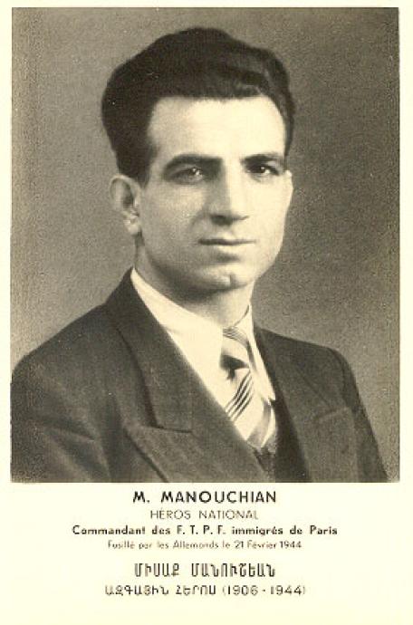 [16]Sur les vingt-trois militants exécutés au Mont-Valérien en février 1944, les Allemands distinguèrent donc soigneusement, via les dix de l’Affiche rouge, sept juifs étrangers, auprès de trois de leurs autres bêtes noires : un « communiste italien », un « Espagnol rouge », un « Arménien, chef de bande » (Manouchian).
