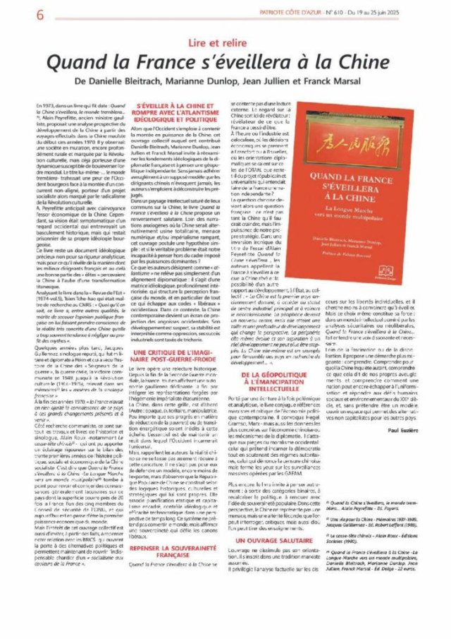 Il privilégie l’analyse factuelle sur les discours sur les libertés individuelles, et il cherche moins à convaincre qu’à éveiller. Mais ce choix même constitue sa force : dans un monde intellectuel dominé par les analyses sécuritaires ou néolibérales, Quand la France s’éveillera à la Chine… fait entendre une voix dissonante et nécessaire.