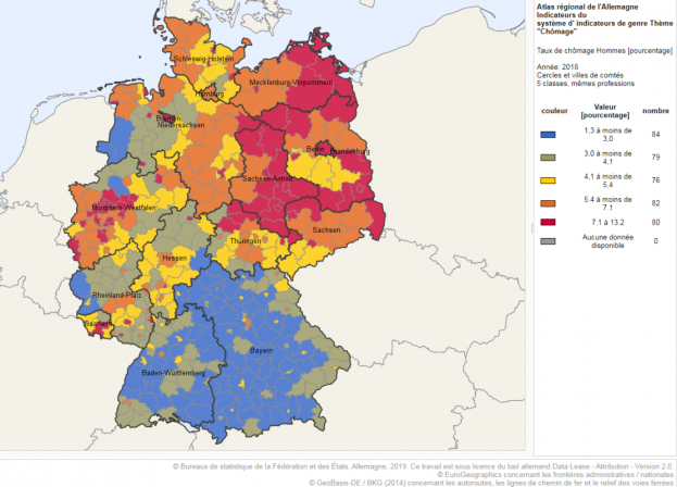 Comparaison des taux de chômage Est / Ouest en 2018