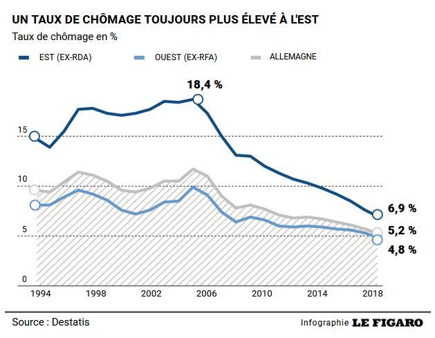 30 ans plus tard, le taux de chômage est toujours 50% plus élevés à l’Est qu’à l’Ouest !