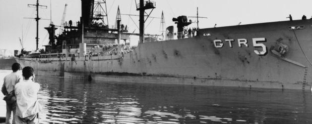 L’USS Liberty après l’attaque israélienne de juin 1967 contre ce navire de renseignement. - Sputnik International, 1920, 18.06.2025