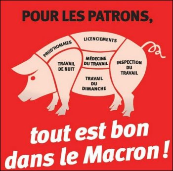 – Il veut sélectionner les étudiants, livrer les jeunes au patronat, brimer les chômeurs, précariser et soumettre les salariés du public et du privé, racketter les retraités pour en faire de « la chair à saucisse » pour les capitalistes.