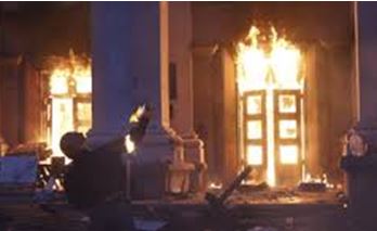 Dans le campement de l’opposition, sur Koulikovo pole, il y avait principalement des gens âgés, des femmes, des protestataires pacifiques qui n’avaient pas d’armes. Ils se sont réfugiés dans la Maison des syndicats. Les néonazis ont mis le feu à ce bâtiment, beaucoup ont brûlé vifs, beaucoup sont morts en sautant par les fenêtres, et beaucoup ont été achevés par des coups quand ils étaient déjà à terre.