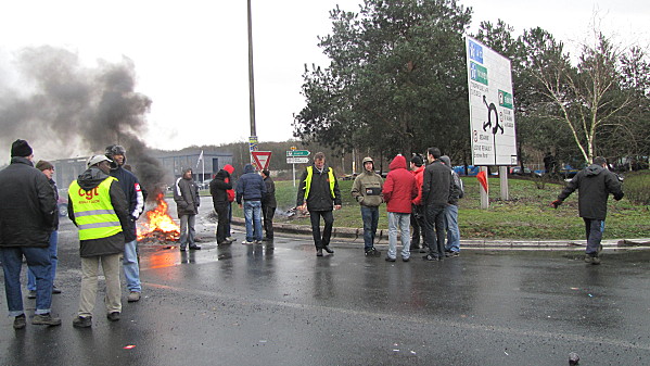 Pascal Morel et les militants de la CGT le 5 Février devant l’usine Renault Cléon.
