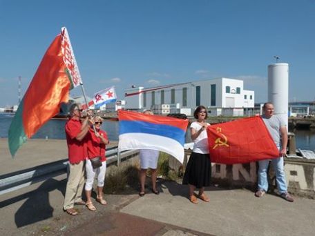 Nous avons quitté les lieux avec un sentiment de déception, car dans ces actions il n’y avait aucune place pour nos aspirations. En passant devant le bateau Smolny nous avons sorti nos drapeaux et nous avons demandé à un correspondant de l’équipage de passer un message aux marins russes, qu’il y a une troisième force, une vraie force de gauche qui les soutient de tout son cœur ! On s’organisera ! Et on donnera une digne riposte au fascisme qui relève sa tête !