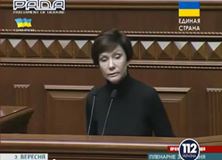 Je souligne que c’est un homme investi de la fonction de premier policier de l’état qui dit une chose pareille. Il y a exactement une semaine, le porte-parole du parlement ukrainien Alexandre Tourtchinov m’a privée de la même façon de mon droit de parler à la tribune en tant que représentante de la fraction d’opposition du « Parti des régions ». Il m’en a privée simplement parce que j’ai déclaré que « le pouvoir qui envoie l’armée bombarder des civils est criminel ». Après quoi, il a donné avec magnanimité la possibilité aux radicaux du parlement d’appeler à fusiller l’opposition. Rappelant que, à la fin de l’année dernière, quand les extrémistes commençaient à s’armer à Kiev, on avait tiré sur ma voiture et que ce fait avait été enregistré par les organes de police sur ma déclaration, je considère ce genre de menaces avec le plus grand sérieux. J’informe également tous ceux qui ne le savent pas encore que le pouvoir actuel couvre des criminels, qui ont osé lever la main sur le fils d’un autre opposant politique, Vladimir Oleinik. Rouslan Oleinik, qui occupe la fonction de procureur de district, a été roué de coups sur son lieu de travail, à la suite de quoi sa vie et sa santé se sont trouvées menacées. Au lieu d’enquêter sur cette agression contre un procureur dans l’exercice de ses fonctions et sur cette intimidation monstrueuse à l’égard d’un opposant et de sa famille, le pouvoir a licencié ledit procureur. J’entends chaque semaine mes collègues parler des passages à tabac de leurs collaborateurs, des perquisitions dans les entreprises de leurs partisans, des menaces et même des attentats sur leurs vies, leur santé et leurs biens.