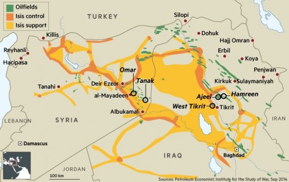 Son implantation dans les grandes régions de l’Irak et la Syrie a permis à ce que l’État islamique contrôle des puits de pétrole dans les deux pays. Extraire de l’huile n’aura aucun effet si vous ne pouvez pas la vendre. Les gens seraient surpris de savoir combien il est facile de le faire dans les zones frontalières de l’Irak, de la Syrie, de la Turquie et de l’Iran depuis plusieurs décennies, surtout depuis qu’ont débuté les sanctions contre l’Irak en 1990.
