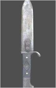 En acier trempé, long de 25 cm et large de 2,5 cm, ce poignard est bel et bien une pièce de musée. Une pièce à conviction surtout. Il s’agit d’un couteau des Jeunesses hitlériennes fabriqué dans la Ruhr dans les années 1930. Sur le fourreau de ce poignard, on peut lire distinctement : « JM Le Pen, 1er REP ».