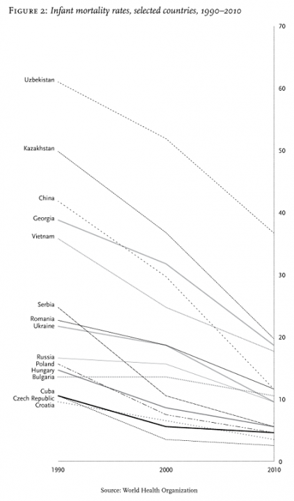 Ces résultats ont été largement négligés par les commentateurs habituels à l’extérieur de l’île, en grande partie basés et financés aux États-Unis et largement dominés par des "Cubanologues" émigrés, comme ils aiment à se présenter, profondément hostiles au régime de La Havane [5]. Parmi les personnalités depuis les années 1970, on trouve Carmelo Mesa-Lago à l’Université de Pittsburgh, « le doyen des études cubaines » et auteur de plus de trente livres ; et son habituel co-auteur Jorge Pérez-López, directeur des affaires économiques internationales pour le ministère américain du Travail, négociateur clé de l’ALENA de longue date à la tête de l’Association pour l’étude de l’économie cubaine. La publication annuelle de l’AEEC Cuba en transition, publiée à Miami, a proposé une série de plans de restructuration de l’économie de l’île selon des lignes capitalistes. Comme le titre de leur journal l’indique, les Cubanologues ont œuvré selon les hypothèses de "l’économie de transition", une branche de l’économie du développement qui est apparue au début des années 1990 pour gérer l’ouverture des anciens pays du Comecon au capital occidental. Ce modèle s’appuyait à son tour sur le Consensus de Washington qui s’était cristallisé autour des réformes néolibérales imposées aux pays endettés d’Amérique latine par le FMI et la Banque Mondiale dans les années 1980 [6]. Ses prescriptions étaient centrées sur l’ouverture de l’économie aux flux mondiaux de capitaux, la privatisation des actifs de l’État, la déréglementation des salaires et des prix et la réduction des dépenses sociales – programme mis en œuvre à travers l’Europe centrale et orientale, ainsi que dans une bonne partie de l’ancienne Union Soviétique, par les technocrates et conseillers du FMI, de la Banque Mondiale, de la BERD, de l’USAID et d’autres institutions internationales. Parmi les premiers dans le domaine était The Road to a Free Economy (1990) de János Kornai ; en quelques années une industrie florissante de "transition" s’était développée, qui tenait pour acquis qu’il n’y avait qu’une seule voie à suivre – le passage d’une économie planifiée socialiste d’État au capitalisme de marché. Toute résistance était non seulement inutile mais coûteuse, car toute réforme partielle était « vouée à l’échec » [7]. Lorsque les "pays en transition" ont plongé dans la récession à partir de 1990, leurs difficultés étaient attribuées à la tiédeur des élites politiques : "rapidité et ampleur" étaient les clés de la réussite ; il était impératif de profiter des "politiques extraordinaires" de la période [8].