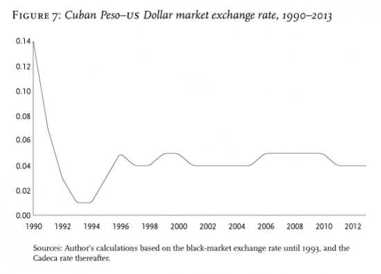 La réforme était loin d’une libéralisation des marchés de change mises en œuvre sous la tutelle occidentale dans les autres pays de l’ex-Comecon car elle s’appliquait uniquement aux transactions individuelles au sein de l’économie nationale ; toutes les autres opérations de change sont restées sous le contrôle de l’Etat. Mais même si elle était limitée dans sa portée et sa fonction, elle eut pour effet d’incorporer le système de double monnaie dans l’économie formelle : la dichotomie n’était plus entre le marché noir et le secteur formel, mais entre les transactions individuelles - où les dollars US circulaient et pouvaient être échangés dans les Cadecas au taux de marché "officieux", à l’époque autour de 100 pesos/dollar – et le secteur public, qui utilisait le taux de change "officiel" de parité 1 dollar/1 peso.