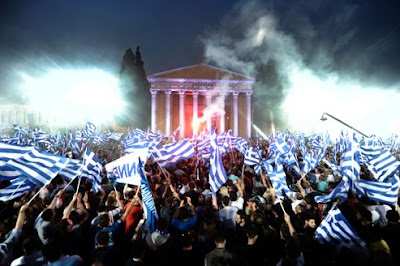 Lors de cette rencontre, les partis Syrisa, Anel, ND, Potami et Pasok sont arrivés à un accord et ont signé une déclaration commune, interprétant le résultat du référendum comme une adhésion de l’euro et de l’UE et pavant la voie à un nouvel accord antipopulaire.