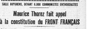 Mais en Juillet 1936, Maurice Thorez lançait au nom du Parti communiste un appel à la formation du Front des Français, déplaçant largement vers le centre et la droite l’axe fondamental du Front populaire : la lutte contre le fascisme et pour le progrès social.