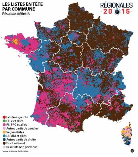 L’on me dit « le peuple de gauche » s’est abstenu en masse et d’aucun de rajouter « il a dit à Pierre Laurent dégage ». Déjà ne ne sais pas ce qu’est cette chose étrange que l’on désigne sous le terme de peuple de gauche. D’autant qu’elle serait si l’on devait s’en tenir a cette notion, réduite aujourd’hui à peau de chagrin et probablement au chagrin tout court. Arrêtons de courir derrière les formules des fabricants de fausses nouvelles. Elles ont été fabriquées pour détourner notre pensée de ses véritables objets. Pour notre connaissance objective, il y a le peuple de France, ses classes sociales qui sont représentées, mais de moins en moins, par des partis politiques, et cela devrait nous suffire pour appréhender ce qui nous intéresse, mais il se trouve que depuis quelques décennies, ces partis politiques ont tendance à se ressembler dans leur programmes comme dans leurs composantes. Ils sont de plus en plus l’expression d’une sous classe qui ne possède ni les moyens de productions ni n’est l’expression des forces productives. Il s’agit d’un autre bricolage du vocabulaire libéral qui l’appelle « classe moyenne ». Il s’agit d’ une catégorie intermédiaire nourrie par une partie des richesses, utilisée comme faire valoir idéologique, mais aussi comme personnel de fonctionnement du système. elle est de plus en plus perçu par le capital comme « un en trop » coûteux, dont il faudrait se séparer. Elle s’est cependant accaparé la représentation politique, oscillant tantôt a gauche tantôt à droite. Elle était devenue jusqu’à un passé récent, la force courtisée qui fait les élections, sauf que la défection du prolétariat qui lassé d’être dupé, s’abstient ou vote avec les démagogues de l’extrême droite, la remet dans une position d’impuissance ou elle ne compte pour rien. Seule elle devient insuffisante a faire du consensus autour d’un des deux pôles politiques de la situation précédente. Face a l’extrême droite, droite et gauche doivent s’unir pour garder la main, cette nouvelle donne est a la fois fragile et inespérée d’un point de vue de classe, elle donne au capitalisme mondialisé l’occasion de remodeler l’organisation politique du monde qu’il ordonne.