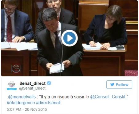 le souci avec la loi actuelle est qu’elle n’a pas de fondement constitutionnel, donc ça limite ce que peut faire le gouvernement (sic.) – alors que la loi (ancienne version) a été jugée constitutionnelle . On rappelle que la loi a été modifiée en novembre, mais Valls a osé demander au Sénat de ne pas saisir le Conseil constitutionnel
