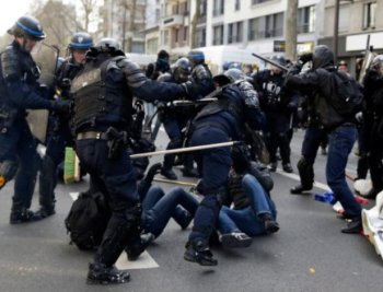Pourtant, en quelques minutes, l’atmosphère bascule. Partis en cortège pour manifester devant le lycée professionnel des Canuts, à quelques dizaines de mètres de leur établissement, les élèves de Doisneau se retrouvent confrontés à un cordon de policiers en tenue de combat, qui dégainent matraques, flash-ball et gaz lacrymogènes avec une nervosité extrême. Quelques projectiles symboliques – bouteilles en plastique, poignées de gravier – sont lancés sur les fonctionnaires, qui se jettent sur deux garçons pour les interpeller. Le cortège se replie vers le commissariat à quelques dizaines de mètres pour manifester leur soutien aux jeunes arrêtés. Mais là aussi, un comité d’accueil musclé les arrose généreusement de gaz lacrymogènes, poussant les lycéens à revenir devant leur établissement.