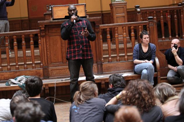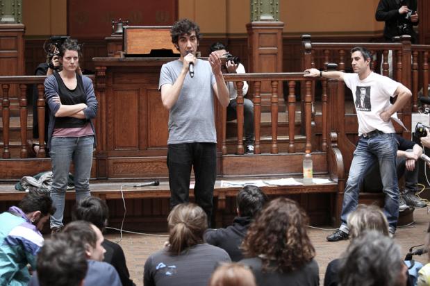 Mercredi soir, cinq cent personnes se serrent sur les bancs de bois de la salle Ambroise Croizat. La Fanfare invisible ouvre la réunion, qu’introduit Arthur, un de ceux qui ont imaginé "Nuit debout" : « C’est le moment de réfléchir à notre stratégie. On a occupé. Qu’est-ce qu’on fait maintenant ? »